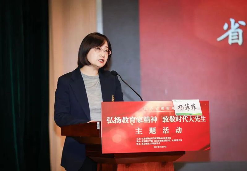 杨菲菲在讲话中阐释了教育家精神的深刻内涵,希望以本次活动为契机,积极发挥“陶行知‘爱满天下’师德教育研究中心”和斯霞“童心母爱”师德教育研究中心的重要作用,呼吁全体教育工作者以教育家精神为灯塔,心怀对孩子、家庭与时代的深厚关切,扎根教育根脉、秉持育人初心,携手共创江苏教育高质量发展新局面。