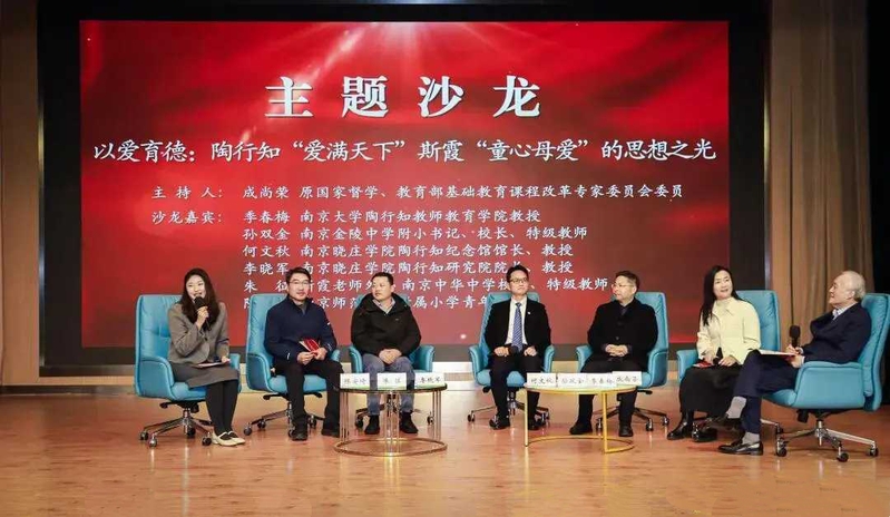 在随后举行的沙龙研讨环节,围绕“以爱育德:陶行知‘爱满天下’、斯霞‘童心母爱’的思想之光”主题,我校陶行知纪念馆馆长何文秋、陶行知研究院院长李晓军与来自南京大学、金陵中学附小、中华中学及南师大附小的专家学者、名校长、青年教师代表展开了深度对话与交流。他们结合自身的研究与实践,分享了关于新时代教育之爱的内涵发展以及以爱育德路径探索的真知灼见,从理论溯源到实践创新,为弘扬教育家精神提供了丰富的思想养分。