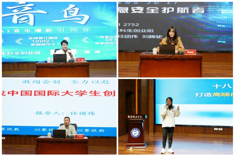 专题报告环节,任团伟围绕项目挖掘与团队培养,介绍了以产业思维为导向、全过程打磨项目的实践路径;赵茜系统阐述了高质量备赛体系,提出金奖项目核心标准,并分享了以协同机制促进项目培育的经验。会上,我校首个国赛金奖项目“音鸟—新时代AI音乐创作革新者”展示了人工智能在音乐创作领域的创新应用;南信大的国赛金奖项目“寻声聚力—全方位舆情信息安全护航者”分享了基于大数据的网络信息安全解决方案。案例展示生动呈现了优质项目的技术深度与社会价值。