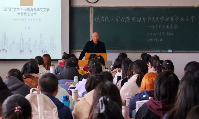 为了拓展视野、提高师生文学阅读和理论探索的兴趣,3月19日,文学院邀请南京大学文学院教授、博士生导师、南京大学台港暨海外华文文学研究中心主任刘俊教授作“现当代文学·台湾暨海外华文文学·世界华文文学”学术讲座。